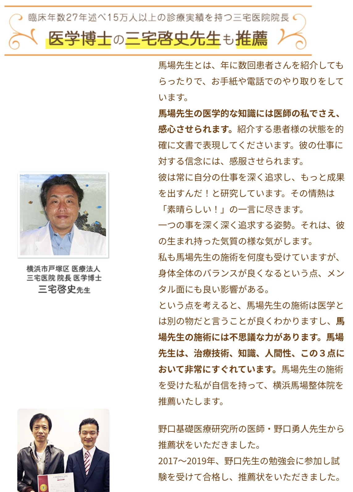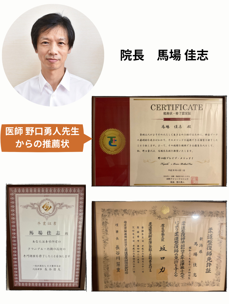 馬場横浜整体院は、国家資格保有者です